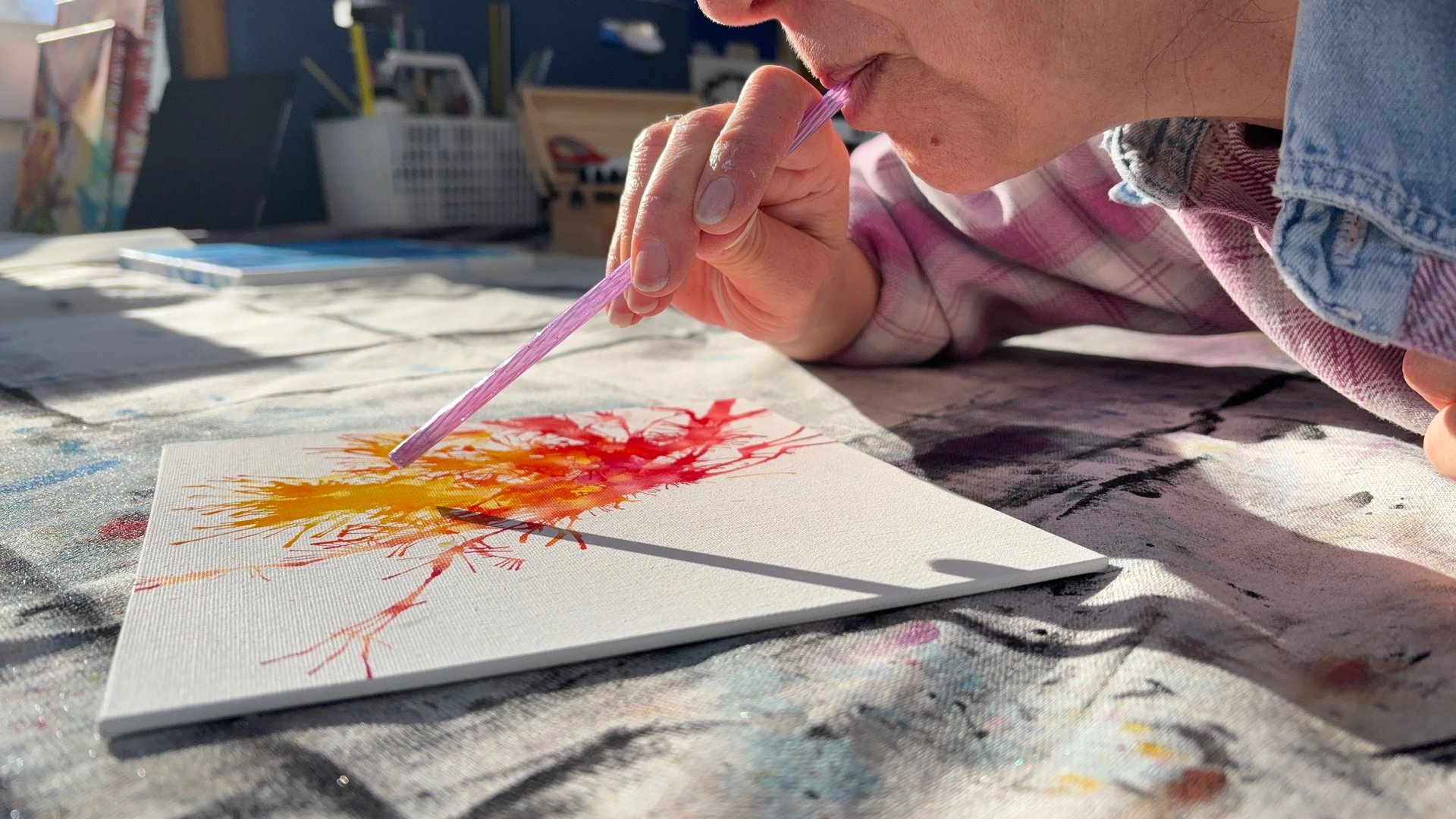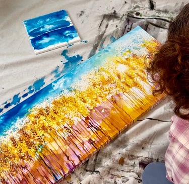 On this site, I’ll keep exploring how color, movement, and chance can open space for reflection, wonder, and connection. Here you’ll find new work, blog posts, and behind-the-scenes glimpses as my voice evolves. If it resonates, follow the blog, sign up for updates, visit the Art Café to see available pieces, and stay connected on social media as this creative conversation unfolds.